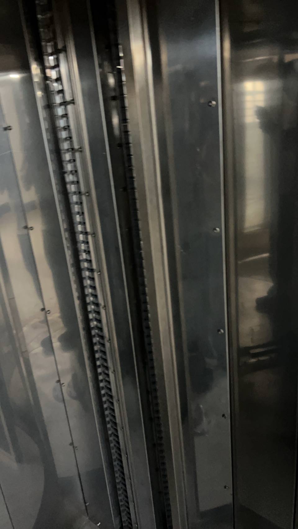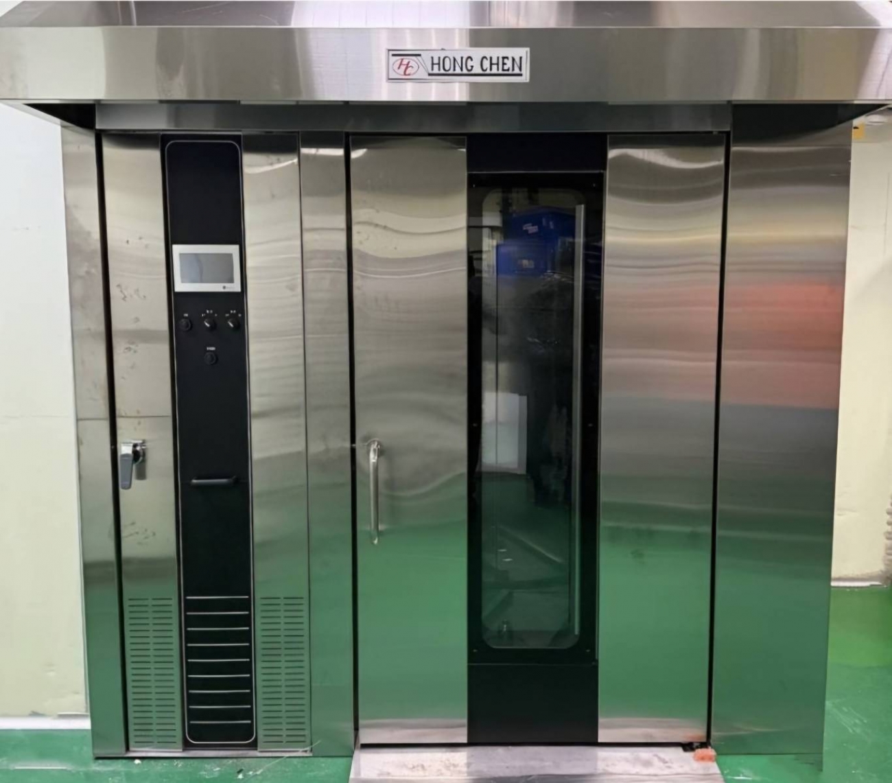 The rotary rack oven is designed to meet high-volume production demands. It utilizes hot-air circulation to evenly distribute heat to every side of the product, with adjustable airflow speeds—low or high—to control the desired baking results.
