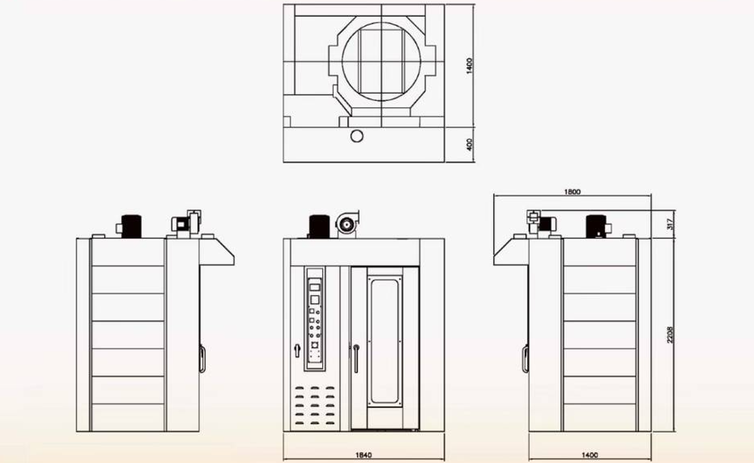 The rotary rack oven is designed for mass production, using hot-air circulation to evenly distribute heat to every side of the product. Airflow speed can be adjusted for precise baking control. Suitable for baking bread and cakes using gas or diesel heating, the oven also includes a steam function with adjustable baking time and reminder. It offers excellent sealing performance for stable heat retention. Optional steam configuration is available—ideal for baking croissants, French bread, and other steam-dependent products.